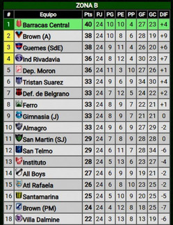 En tanto, por la Zona A, Almirante Brown igualó 0-0 con San Martín (T) y ahora comparte la cima con Tigre (que tiene un partido más). Ayer también jugaron: Chacarita 0-0 Deportivo Riestra, Estudiantes (BA) 0-0 Temperley y Alvarado 1-0 Deportivo Maipú. Hoy se cierra la fecha con tres encuentros: Mitre vs Estudiantes (RC), Atlanta vs Gimnasia (M) y Nueva Chicago vs Belgrano (todos a las 11.00).