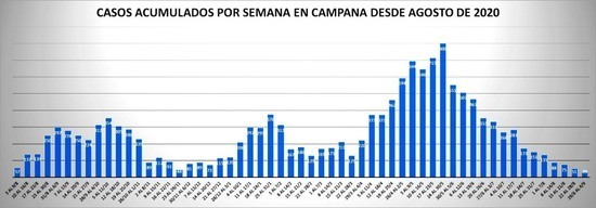 Con la cifra informada ayer, Campana cerró la semana con menor cantidad de contagios acumulados desde julio del año pasado: apenas 29 (un promedio de 4,1 por día). Esto significa, además, un 43% de casos menos respecto a la semana anterior.