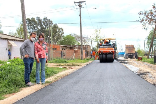 El barrio San Cayetano suma nuevas calles de asfalto y el intendente Sebastián Abella estuvo presente en el lugar para supervisar los trabajos.