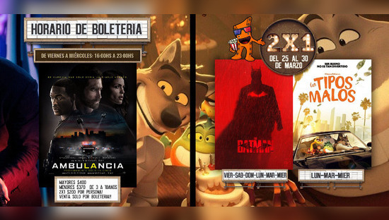 Horarios del 25 al 31 de Marzo. "Venta Anticipada" Horario de la Boletería del Cine del Viernes a Miércoles: 16:00 hs a 23:00 hs.