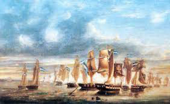 Al mando de sólo 4 buques, 7 cañoneras, el 11 de junio de 1826, el almirante argentino-irlandés Guillermo Brown pone a la fuga a una escuadra del Imperio del Brasil que bloqueaba el puerto de Buenos Aires desde el 22 de diciembre 1825. La poderosa fuerza brasileña se presentó ante Buenos Aires, integrada por 31 barcos. La llamaron el Combate de los Pozos, y tuvo lugar en al actual Dársena Norte.
