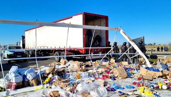 La policía tuvo que custodiar el lugar ante un eventual intento de saqueo de la carga.