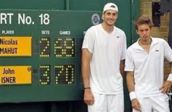 El 22 de junio de 2010 se disputó en Wimbledon se disputó el partido más largo de la historia del tenis: el estadounidense John Isner venció al francés Nicolas Mahut al cabo de 11 horas, 6 minutos y 23 segundos. El quinto set de ese partido, también es el más largo de la historia: duró 8 horas y 11 minutos.