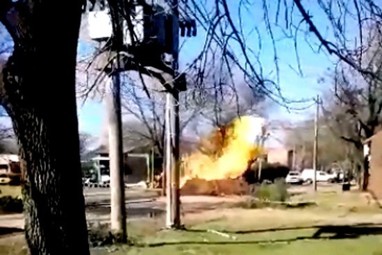 #Ahora Rotura de caño, pérdida de gas e incendio en Coltelli y Demarco, barrio Las Campanas. Ocurrió al romperse un caño de Gas Natural que no estaba bien señalizado, la retroexcavadora de Municipalidad trabajaba corrigiendo el zanjeo. Bomberos trabajan en el lugar. CP zona 8 pic.twitter.com/a1RPQeyG85