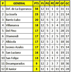 En ese sentido, La Josefa amplió su ventaja en la segunda posición, mientras San Felipe no pudo aprovechar la posibilidad de igualar la línea de San Luciano para no estar en soledad en la antepenúltima ubicación. En cambio, Desamparados y El Junior siguen, por ahora, hundidos en los últimos dos puestos.