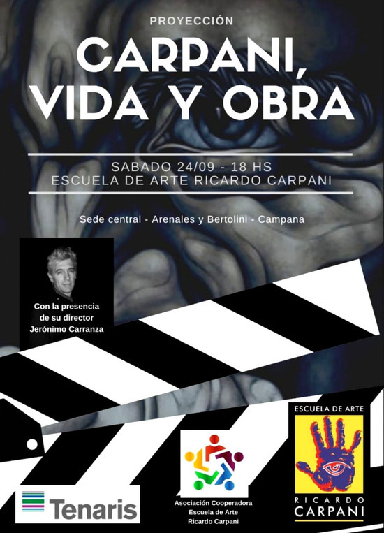 Hoy sábado 24 a las 18 se proyectará el filme: "Carpani, vida y obra" en las instalaciones de la Escuela de Artes Visuales de Campana, que lleva el nombre del afamado artista plástico.