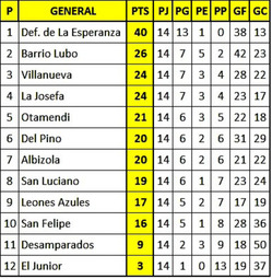 Ayer se disputó íntegramente la tercera fecha del Torneo Clausura de la Primera A de la Liga Campanense de Fútbol. Y la jornada dejó novedades en la cima de las posiciones: cayó Albizola, que era el único equipo con puntaje ideal, y tanto su verdugo, Barrio Lubo, como Villanueva y Defensores de La Esperanza se treparon a lo más alto.