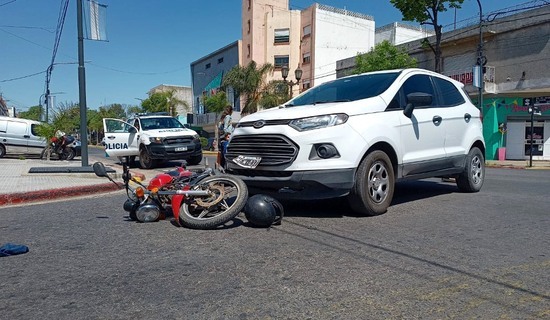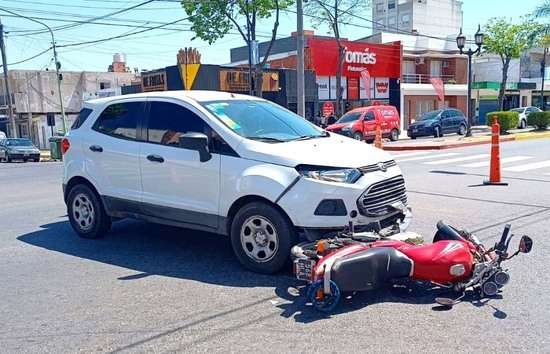 Por circunstancias que se tratan de establecer, una Ford Ecosport patente MEM437 y una motocicleta Honda 150 dominio 568HLA colisionaron en la esquina de la Avenida Varela y calle Jacob del centro de la ciudad.
