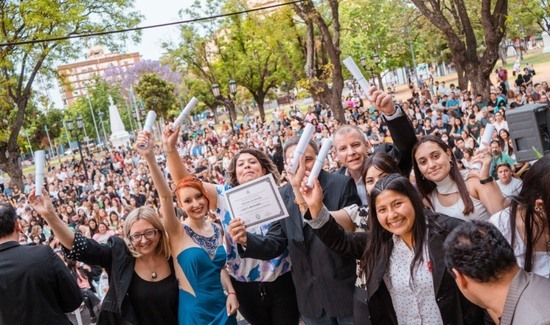 Con la presencia del intendente Sebastián Abella, el Acto de Colación de grados se realizó frente a la sede de la Casa de Estudio -encabezado por la directora, María Isabel Fernández- y reunió a cerca de 800 alumnos de los años 2019, 2020 y 2021 y agosto del presente año ya que por la pandemia no se pudo hacer los actos correspondientes, ante un público de más de dos mil personas.