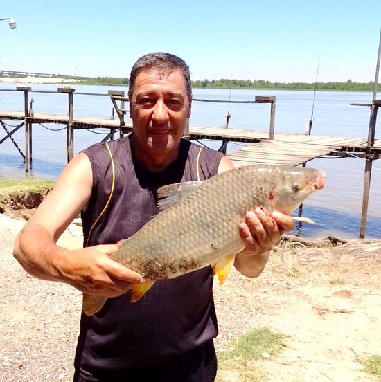 Adrián Fernández y una de las bogas capturadas esta semana en el camping El Molino sobre el Paraná Guazú