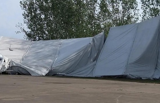 La tormenta ocasionó daños a la carpa que estaba preparada para la celebración.