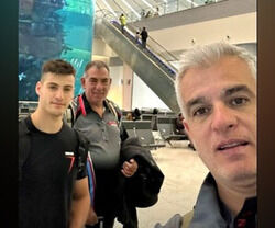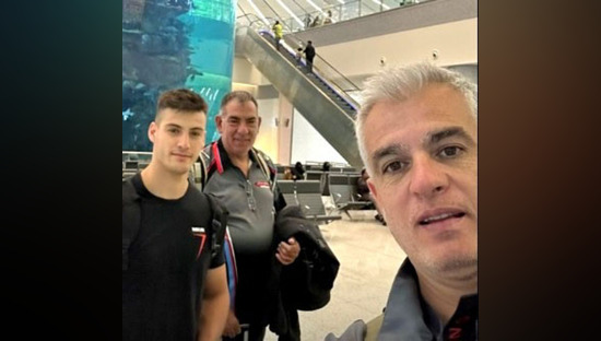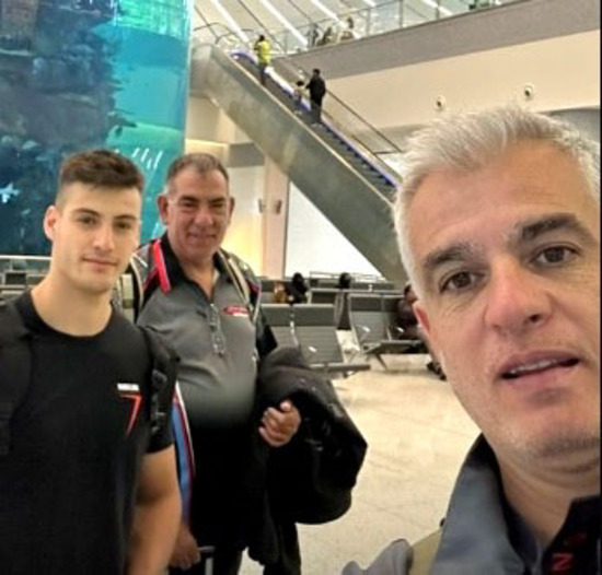 CARLOS Y LUCAS DEVESA JUNTO A PABLO COPETTI EN EL AEROPUERTO INTERNACIONAL KING ABDULAZIZ, AL NORTE DE YEDA, EN ARABIA SAUDITA.