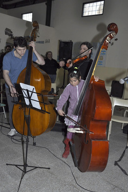 Los "profes" Estefanía Galloso (viola), Juan De Dios Rivas (violoncello) y Emilio Longo (contrabajo), junto al Director Prof. Hilario Flores Coni, fueron guiando a sus alumnos, hasta el aplauso sincero y generoso del final, que los incentivará a aceptar nuevos desafíos.