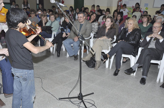Fue así como, casi tímidos, pero empujados por el silencio respetuoso de propios y extraños, los chicos fueron plasmando en el Salón de Usos Múltiples, su arte, su música. Esa que los incluye, que les da un ámbito de contención y participación. Primero, con ejemplos solistas. Luego, ya como grupo mismo.