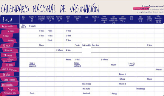 Además, proporcionan inmunidad contra la poliomielitis, el sarampión, la rubéola, las paperas (parotiditis), la difteria, la tos convulsa y el tétanos; estas vacunas son gratuitas y obligatorias, y están disponibles en todos los hospitales y centros de salud del país.