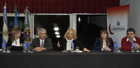 "Estoy feliz de compartir este acto con ustedes porque es el comienzo de un sueño que tienen muchas familias campanenses como es tener la escritura de sus hogares", expresó la Jefa Comunal Giroldi ante los presentes en el Salón "Ronald Nash".