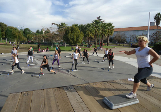 "Zeus, Club & Fitness", con los Profesores Cristina Yaquemé, Paola Coscia y Pablo Vidoni llevaron adelante una dinámica de gimnasia en el playón del parque, con el acompañamiento de la Prof. Eliana Clérici, de la Dirección de Deportes.