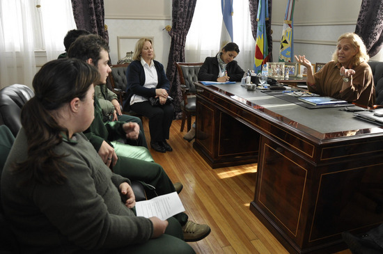Giroldi se encontraba acompañada por el Director de Prensa y Difusión, Hernán Rafael, y recibió a la Directora General, Lic. Susana Moroni, la Directora de la Fundación, Marcela Bell, la Profesora del Taller de Gráfica, Mariela Rosales, y al Preceptor, Gustavo Méndez, junto a los alumnos Jesús Casco, Carlos Ponti, Ana Paula Aielllo y Sebastián Manuel Varela.
