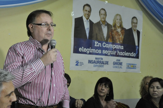 A su turno, el candidato a primer concejal por el Frente para la Victoria en Campana, el DR. Juan José Ghione, también ensayó un encendido discurso donde, entre otras cosas, puso en relieve la unidad del peronismo como forma de alcanzar un mejor resultado electoral en la contienda de Octubre: "Tenemos que tomar conciencia del Partido al que representamos. Tenemos la posibilidad de representar al movimiento nacional y popular más grande de la historia, de Argentina y Latinoamérica. Tenemos que hacer todos los esfuerzos posibles, vamos a estar en la calle".