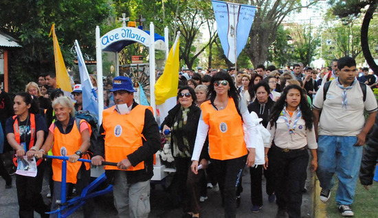 En una multitudinaria muestra de Fe y Devoción a la Virgen María los fieles cientos de fieles caminaban al cierre de esta edición hacia Luján, bajo el lema "Feliz de ti por haber creído", en lo que es la 35º peregrinación del pueblo de Dios a Luján.