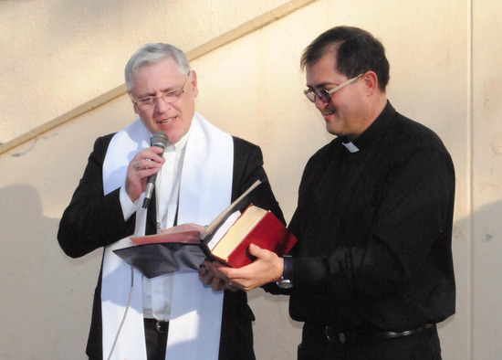 Monseñor Sarlinga junto al padre Ariel Pérez.