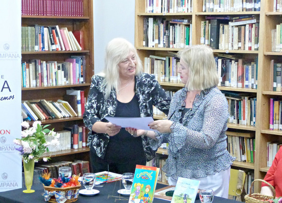 "Los cuentos que integran este material, excelentemente impreso, con destacadas ilustraciones y textos que encierran valores que nuestros niños deben cultivar, serán una herramienta educativa fundamental para padres y docentes. Vayan nuestros sinceros y cálidos aplausos por sus 50 años en el campo de las letras, y 25 años con la literatura infantil, y su itinerario literario base introductoria al lanzamiento comunitario de esta obra", sostuvo la Coordinadora General Ejecutiva de la Institución Marta Magistratti de Demousselle, quien saludó a la escritora en nombre de la Intendente Giroldi.