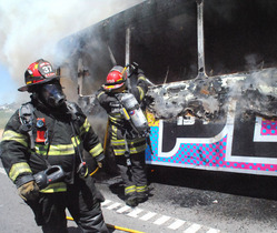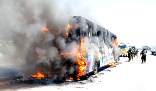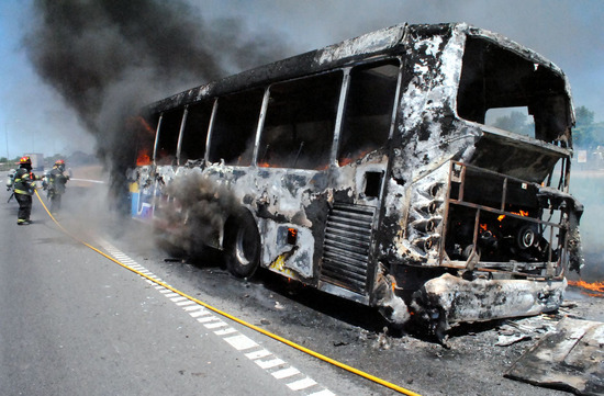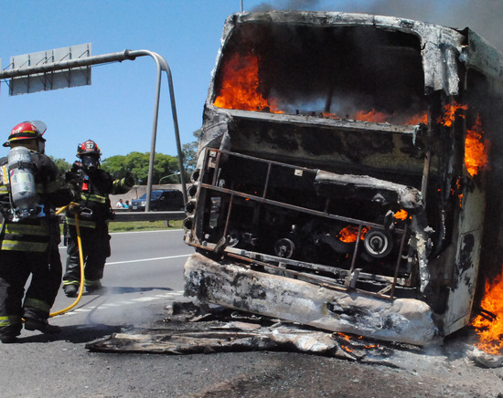 Un interno de Chevallier Metropolitana del servicio Plus fue totalmente arrasado por el fuego cuando circulaba por la Panamericana.