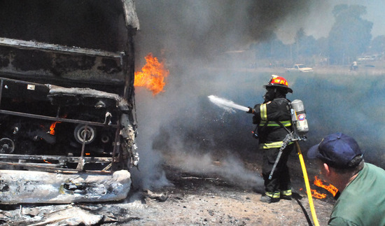 En cuestión de segundos la unidad Mercedes Benz quedó envuelta en llamas y su conductor incluso sufrió un principio de asfixia al intentar bajar algunas pertenencias.