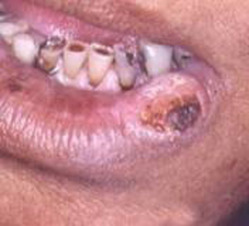 " Una llaga en los labios, en las encías o dentro de su boca que sangra con facilidad y no cicatriza