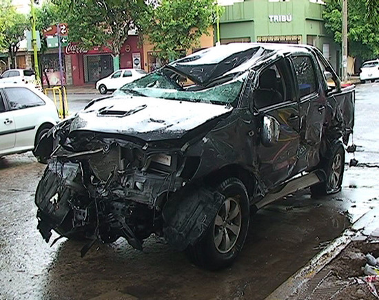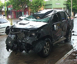 La camioneta sufrió graves daños en el vuelco.