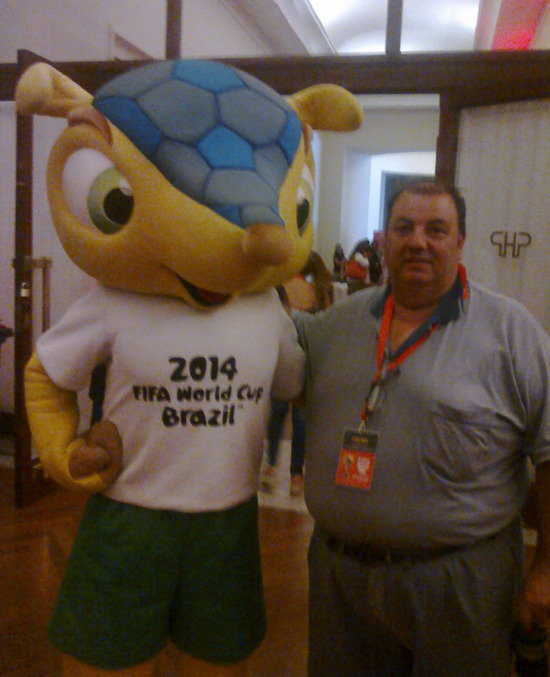 Los periodistas tuvieron la oportunidad de posar junto a la Copa del Mundo y junto a la mascota del Mundial ademàs de recibir como obsequio la camiseta original de la Selecciòn Argentina por gentileza de la marca de gaseosa que es auspiciante del Tour de la Copa que de Mar del Plata se traslada a Còrdoba y luego viaja directo a Brasil.