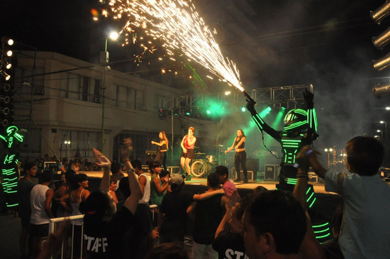 Para acompañar tal puesta en escena se sumaron también algunos robots luminosos que se convirtieron en el principal atractivo mientras el DJ hacía sus mezclas. Con un gran despliegue coreográfico animaron el baile y se lucieron en la pista. Bailarines de los talles municipales de danzas dirigidos por Claudia Giuppone y Ariel Mernies también fueron participes del show.