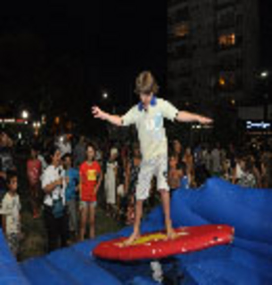 Los más pequeños también tuvieron su lugar para divertirse con juegos. Hubo una cama elástica con arnés, dos maquinas de baile y una tabla de surf interactiva. También, y junto al Palacio Municipal, se dispuso un lugar para que los amantes del skate exhibieran sus destrezas en las rampas.
