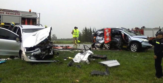 Dos personas murieron y otras seis resultaron con heridas de gravedad en un choque frontal que se produjo en la mañana ayer a las 6.30 horas aproximadamente en la ruta 193 Km 12 mano a Zárate.