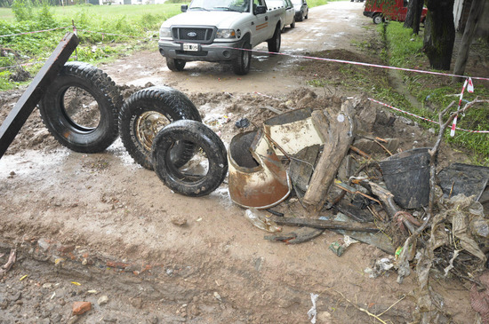"Tras un intenso trabajo de personal municipal se encontró "un supermercado de cosas usadas". En el interior del pluvial había dos lavarropas, un carretel de cables de gran tamaño que hubo que romperlo para sacarlo, ramas y troncos de distintos tamaños, ruedas y cubiertas de autos y camiones", informó el Scretario sobre la situación del lugar al tiempo que solicitó a los vecinos que "son los responsables directos de esta situación que por favor reflexionen".