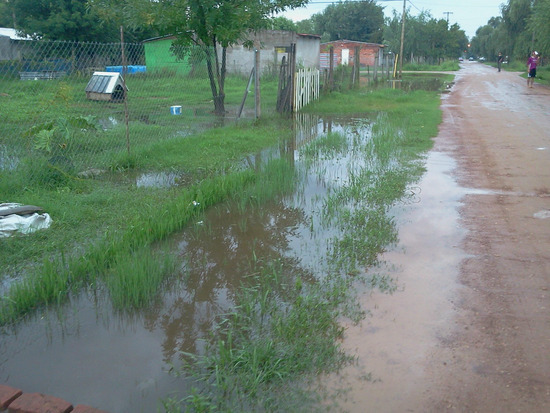 "Según nos comentaron los vecinos los existen varios inconvenientes con los desagües en el barrio como ser la obstrucción de las zanjas por un efecto de cuello de botella que se produce por la presencia de caños de desagüe de diámetros inferiores a los correspondientes y por la presencia de desniveles en la colocación de los mismos y que impedirían el drenaje normal del agua ante la presencia de caudales muy importantes como los de los últimos días".