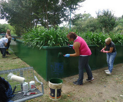 Momento de pleno desarrollo de la tarea, pensando en los propios vecinos y en los chicos que concurren a la escuela.