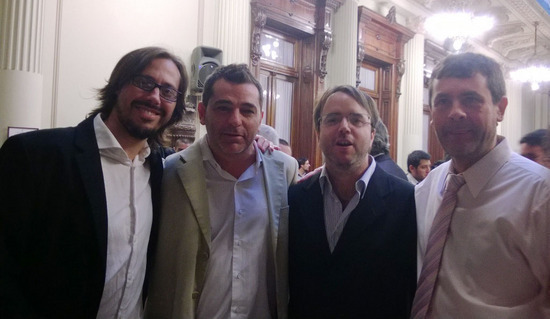 Los Prof. Astorga, Clariá y Herrero, Autoridades Provinciales ellos, junto al Prof. Ulmete.