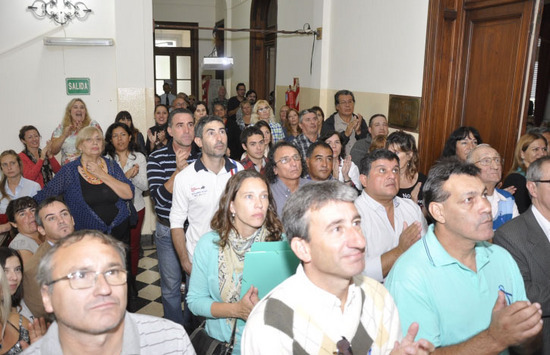 Desde los pasillos del 1º piso del Municipio se pudo ver por pantalla gigante todo el acto.