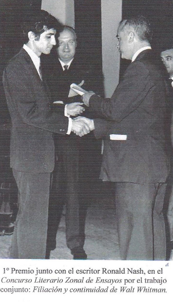 Creo que la primera vez que recibió un premio en un Concurso literario llevado a cabo aquí en Campana fue el año siguiente de haber finalizado sus estudios secundarios y esto de alguna manera obró como confirmación de algo que muy tempranamente se había manifestado en él pero que en esa oportunidad se presentaba con contundencia, sería escritor. Como buen escritor fue un observador agudo, perceptivo, curioso al que la literatura le despabilaba todos los sentidos, le abría las puertas del conocimiento y le permitía incursionar en mundos reales o fantásticos tanto para interpretarlos como para construirlos. En ellos sus personajes representaban un amplio marco que incluía desde los más cándidos o pueriles hasta los más oscuros no exentos de cierta perversidad, pero todos ellos construídos de manera impecable y a veces delirada pero siempre apropiada a sus historias sin desperdicios.