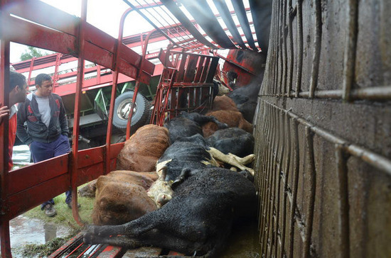 La peor parte del choque se la llevaron las vacas que eran trasladadas en un camión jaula que provenía de Santa Fe y que pertenecía al Grupo Las Piaras, ya que algunas de ellas resultaron muertas y otras heridas.