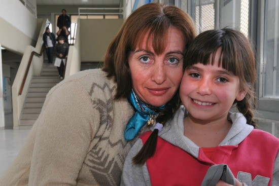 Victoria, beneficiaria del programa, junto a su mamá en el lanzamiento.