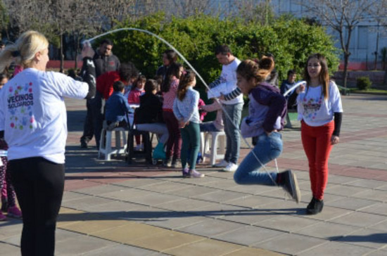 Saltando la soga ó dibujando, algunas de las actividades que propone la "kermese".