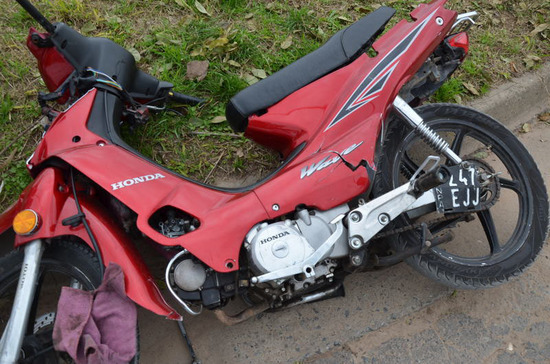 El hecho se produjo en la zona de Bomberos Voluntarios y Melo, donde un joven de 19 años, identificado como Agustín Castillo, de 19 años, resultó lesionado al ser embestida la moto Honda en que circulaba por un automóvil Chevrolet.