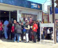Esta oficina nuclea la atención de los vecinos de Zárate y de Campana, y si bien han afectado personal de Ventas a Atención al Público; ha sido inevitable la formación de largas colas que exceden los límites de la oficina y serpentean la vereda.
