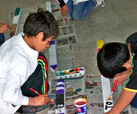 Los niños pintaron los tutores para guiar el buen crecimiento de los árboles