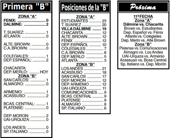 Fue una victoria importantísima para el equipo de Sergio Rondina. Porque con estos tres puntos, llegó a los 19 y se mantiene en la tercera posición de la Zona A, a uno del escolta Tristán Suárez (suma 20, pero queda libre en la próxima fecha) y a cuatro del líder Estudiantes de Caseros (23). Y además le sacó seis de distancia a Almirante Brown (13), que ocupa el cuarto puesto (del 2º al 4º clasifican al Hexagonal por el tercer ascenso).