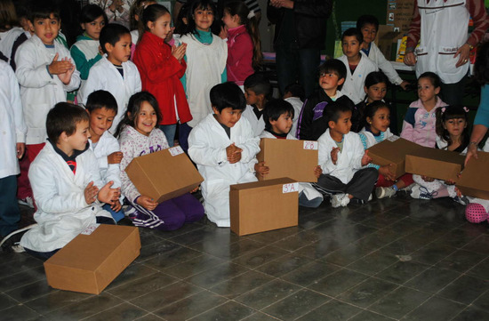 Los chicos realizaron algo parecido a un "juramento" que se transformó en sonrisa en los docentes, al gritar al unísono que cuidarán todo lo recibido, ya que cada caja cargada de útiles, quedará en poder de cada docente en su armario para ser utilizados cuando sea necesario.