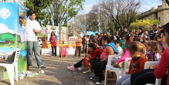 Los personajes de Actitud R: la Rana Tacha, el Cuis Ruiz y el Hornero Rockero, enseñaron a los más chiquitos y a los papás a tirar la basura en su lugar a través de una obra de títeres y juegos varios.