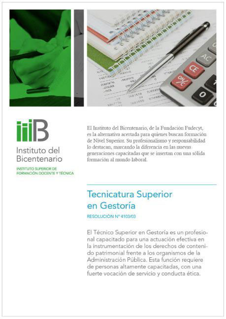 El Instituto del Bicentenario de Campana da a conocer los alcances de la Tecnicatura Superior en Gestoría. Esta carrera de nivel terciario se implementó como parte de la oferta académica del Instituto con la finalidad de profesionalizar la actividad del Gestor.